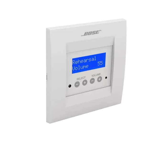 Le contrôleur de zone Bose Professional ControlSpace CC-16 est un élégant appareil mural conçu pour permettre à l’utilisateur final de contrôler les systèmes ControlSpace. La programmation personnalisée permet au CC-16 de contrôler une variété d’éléments du système, de la commutation de sources audio à distance à la sélection de « scènes » ou de configurations du système. Le CC-16 dispose d’un écran LCD bitmap et de quatre boutons pour afficher et contrôler les paramètres du système.